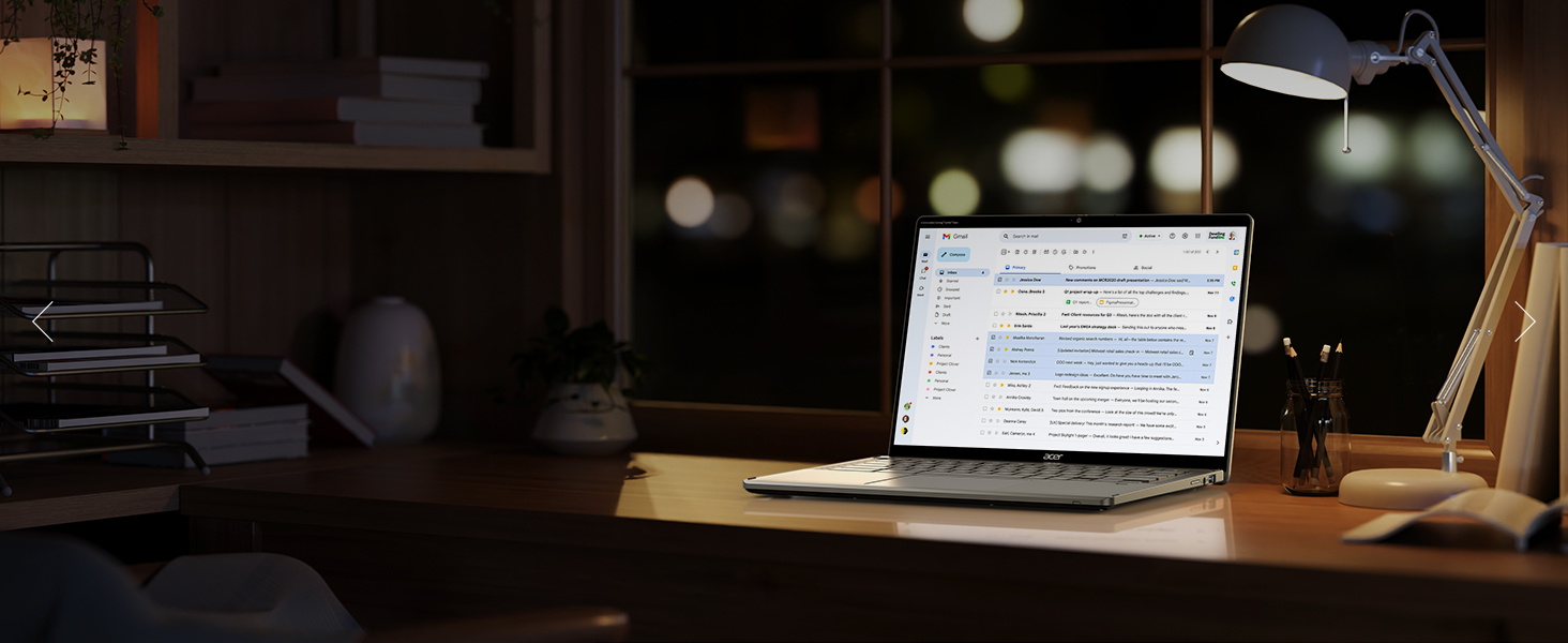 Podwójna pamięć operacyjna i podwójna pamięć masowa oznaczają więcej przestrzeni na Twoje projekty i większą wydajność. Chromebook Plus wspiera aplikacje Google i Adobe wspomagane przez AI, a także jest kompatybilny z Microsoft 365®. Bez względu na to, czy piszesz, projektujesz, czy planujesz — ten sprzęt wspiera Twoją kreatywność.