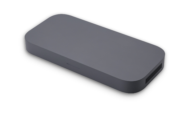 Room Kit jest na tyle smukły, że można go dyskretnie umieścić za dowolnym wyświetlaczem, a magnetyczna obudowa, zestaw do montażu na ścianie i podstawka ułatwiają instalację w dowolnym miejscu. Wszystkie porty wejścia/wyjścia znajdują się po jednej stronie urządzenia, co upraszcza konfigurację i zarządzanie okablowaniem.