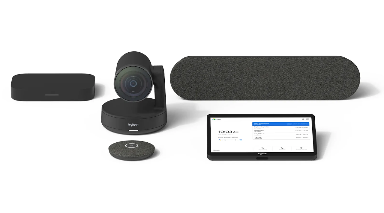 Rozwiązania Logitech do sal konferencyjnych do obsługi Google Meet zawierają wszystko, czego potrzebujesz, aby stworzyć sale konferencyjne z jednym lub dwoma wyświetlaczami. Wstępnie skonfigurowane systemy dostępne w małych, średnich i dużych konfiguracjach zawierają kamerę konferencyjną Logitech, komputer Chromebox z uchwytem i systemem podtrzymywania kabli oraz ekran dotykowy Logitech Tap.