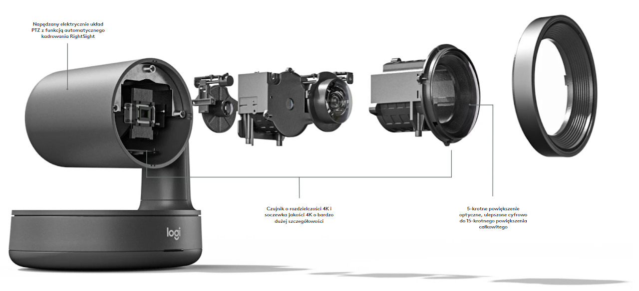 Zawarta w zestawie kamera Rally 4K Ultra-HD zapisuje obrazy w rozdzielczości ultra-high-definition przy polu widzenia pod kątem 82°. Funkcja automatycznego kadrowania grupy uczestników gwarantuje, że każda osoba w sali będzie dobrze widoczna. Dodatkowymi atutami są 15-krotny zoom (hybrydowy zoom optyczny i cyfrowy) i redukcja podświetlenia, i poświaty bez przyciemniania całego obrazu.