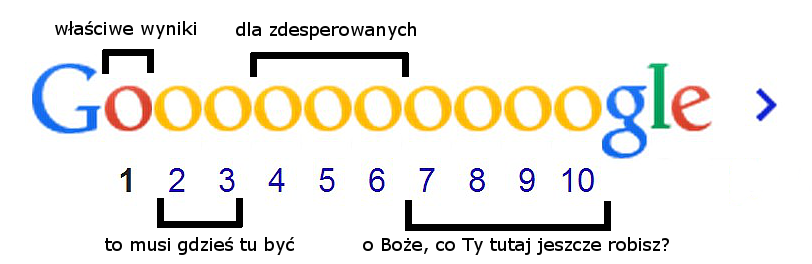 Tak statystycznie można podsumować wyszukiwanie na stronach Google. Jeżeli Twoi pracownicy lub klienci z reguły krążą poza pierwszą 5 podczas wyszukiwania informacji w Twojej obecnej wyszukiwarce, porozmawiaj z nami, jak poprawić jakość Twoich narzędzi, wymieniając je na Google Search Appliance.